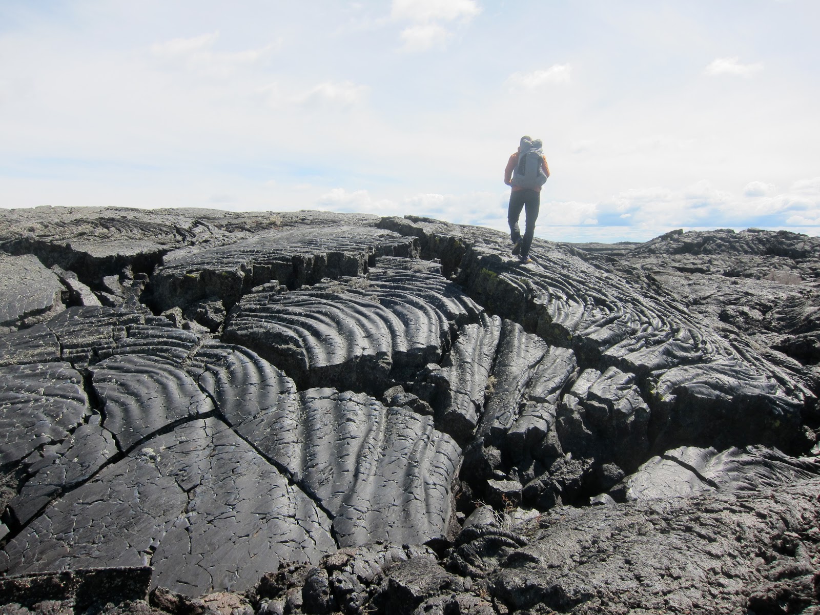 Despite essentially covering similar ground we saw many neat lava features we didn't see before, and didn't see many neat lavas features we did see last time. I believe, if you were to walk a line of latitude straight across Craters, and then move 300 yards north or south and walk straight across it again, your experience would be completely different. The smallest changes in the nature of the lava change how you hike so much, and the lava just changes constantly, there are so many variations.